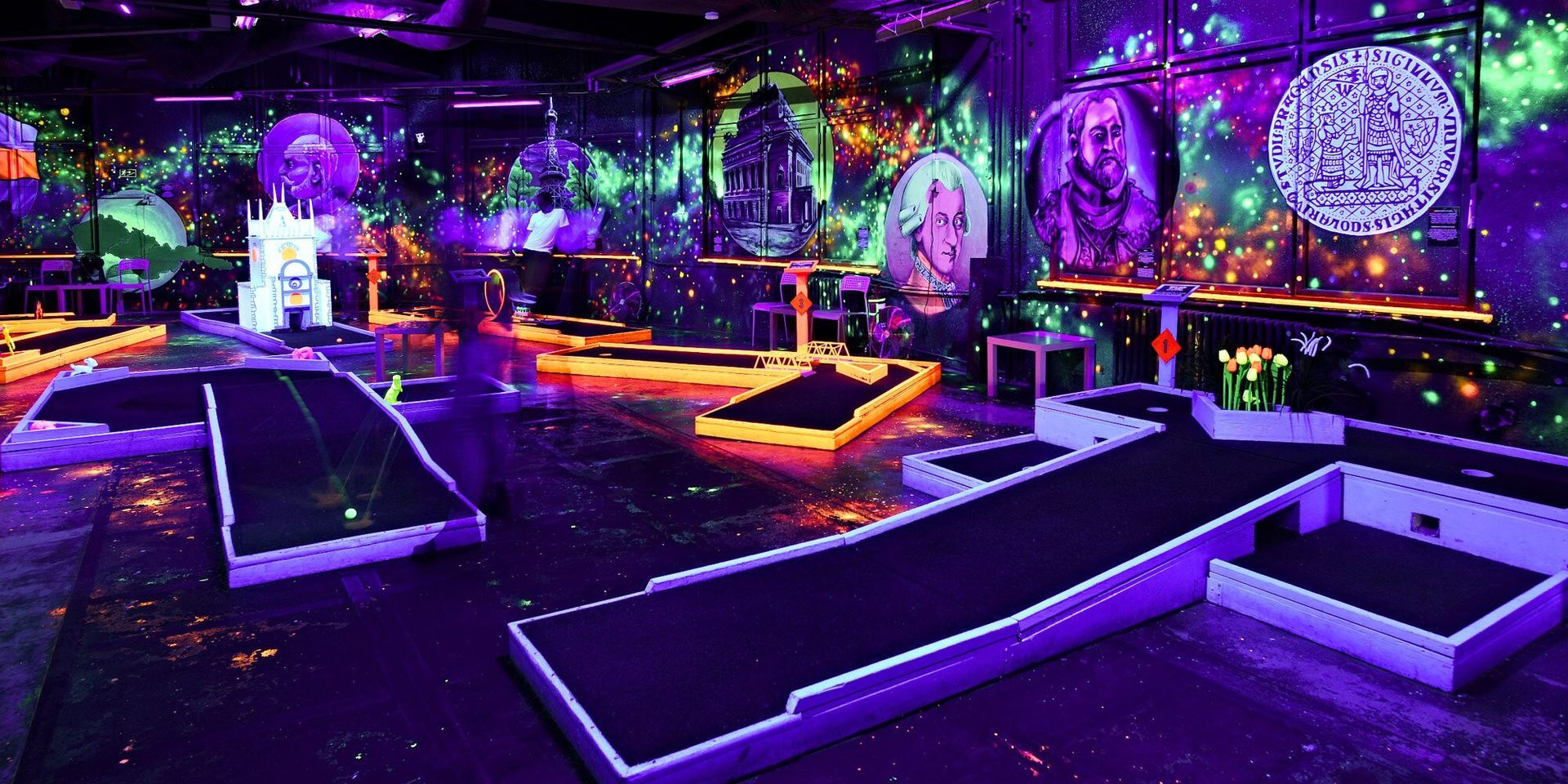לאחר מכן תוכלו ליהנות ממסלולי גולף זוהרים באולטרה סגול,